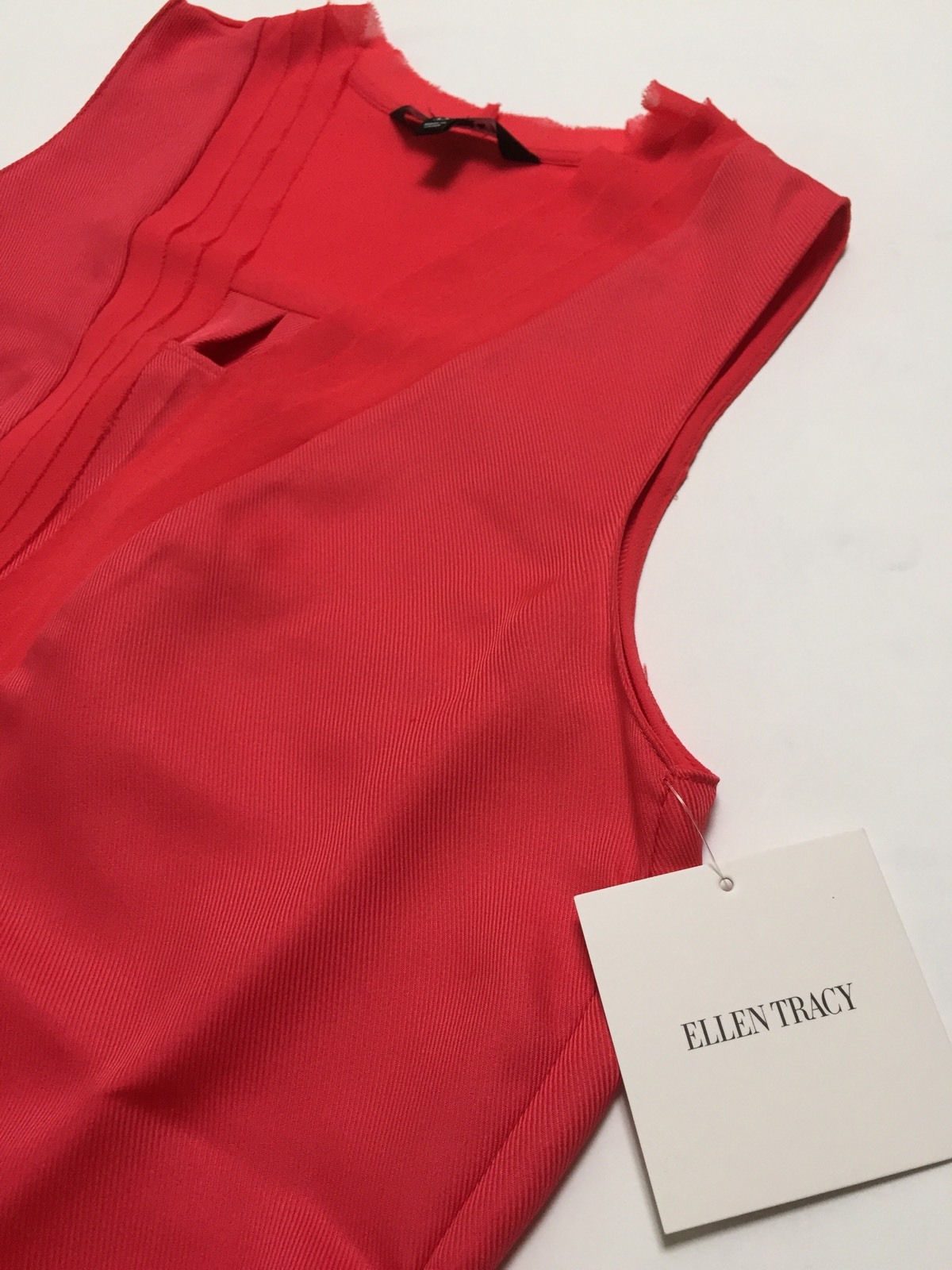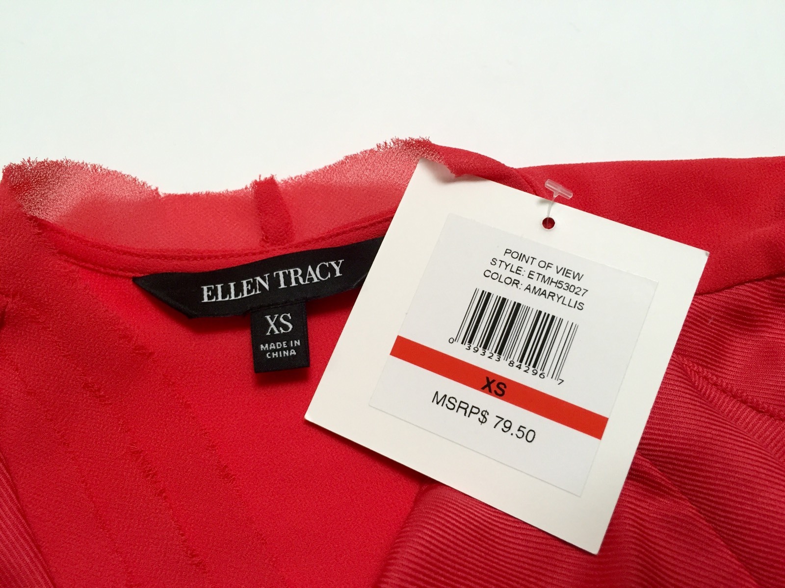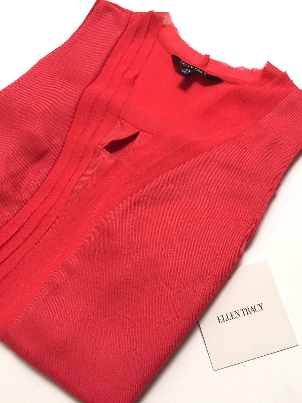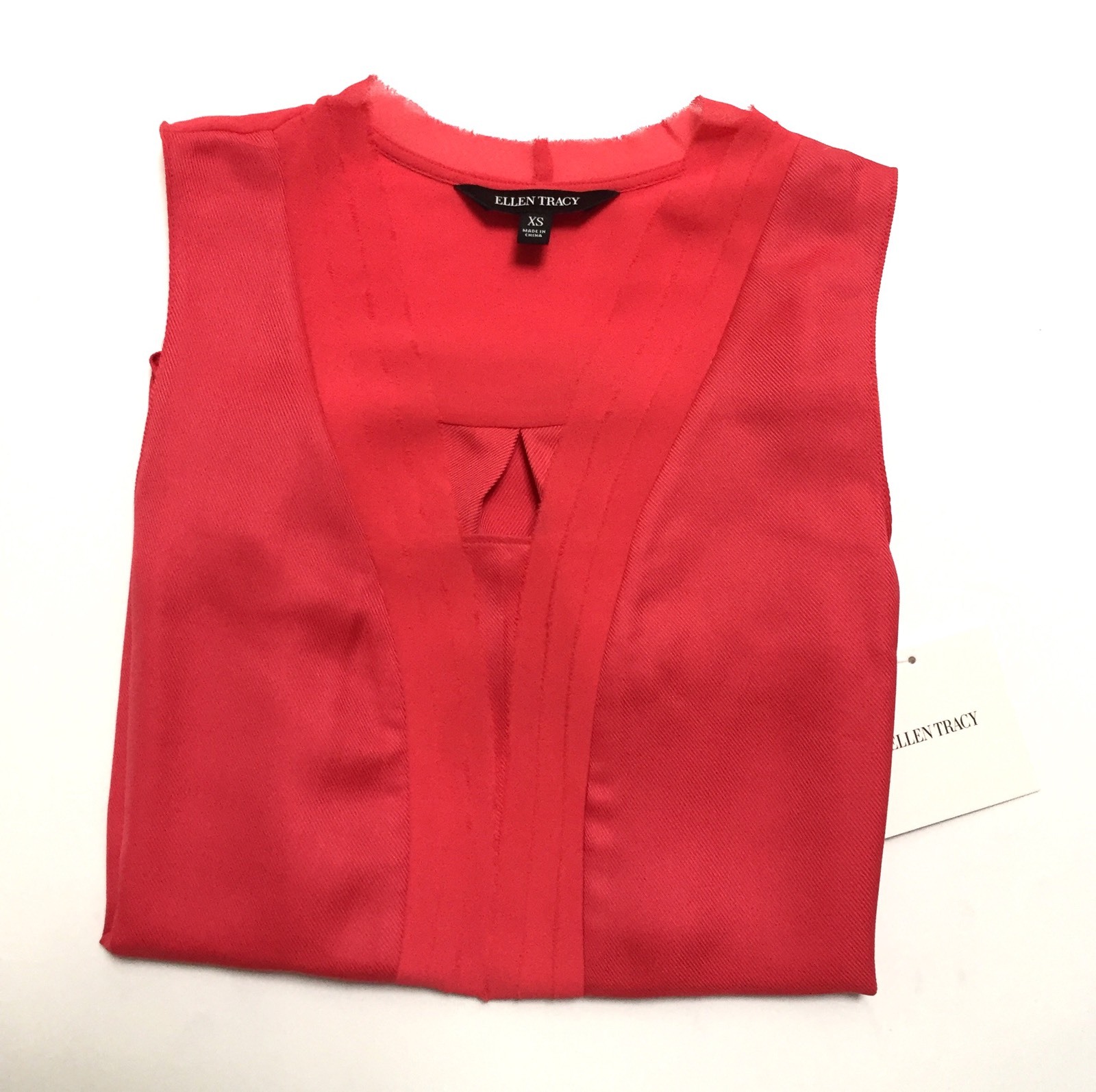 Beautiful $80 ELLEN TRACY Blouse Sleeveless. V-Neck. Pleated detail in the front.Relaxed fitNew with Tag. Impeccable condition. Size: X-SmallColor: Red / OrangeMeasurementsArmpit to armpit: 17"Armpit seam to bottom hem: 15"Materials100% polyesterItem comes from a smoke & pet free home.Please ask any questions before purchasing. Happy to answer all. Please note that I am not a retail store. I do my best to describe items as accurately as possible.RETURNS: 30 days - Buyer pays return shipping. The item(s) will need to be returned unworn, free of stains / dirt, (not washed, damaged, used or altered) in their original condition and with all original tags still attached. Failure to do so, will compromise the refund. Please allow 7-10 working days for it to be inspected and processed.Thank you so much! ********************************* Payments should be done within 3 days of sale, otherwise eBay will record an "unpaid item" on your account.Orders will be shipped to the address provided at eBay transaction.********************************* Once the items leave the Post Office, The Closet Ninja is not responsible for any delays, charges or any matter incurred with Customs of your country. Exact delivery time of items is only determined by the post office. It usually estimates 5-10 days but delays can get up to 30 days. If you have any question, please contact me through eBay by “Ask seller question” link at the end of the listing. Happy shopping!SaveSaveSaveSaveSaveSave