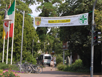 Das große Schützen- und Volksfest der St. Sebastianus-Schützenbruderschaft Lintorf 1464 wirft seine Schatten voraus. Das erste Banner wurde bereits am heutigen Dienstag, 16. Juli, im Dorf vor dem alten Rathaus aufgehängt. Mit dabei Detlev Czoske, stellvertretender Vorsitzender der Bürger-Union Ratingen: “Uns ist die Förderung des heimischen Brauchtums nach wie vor sehr wichtig. Damit wollen wir auch den Einsatz der Schützen für Lintorf erneut ein wenig honorieren.”