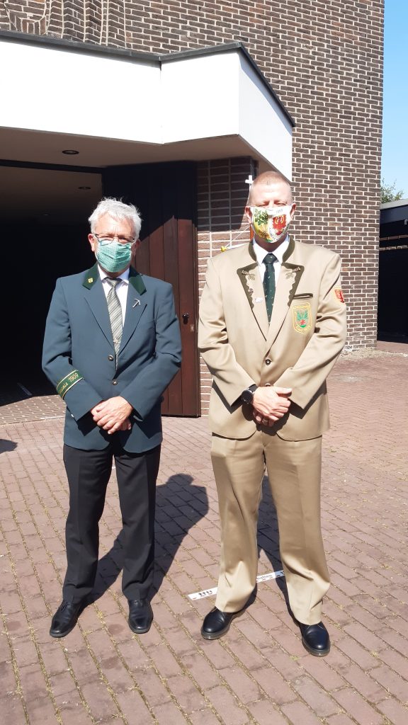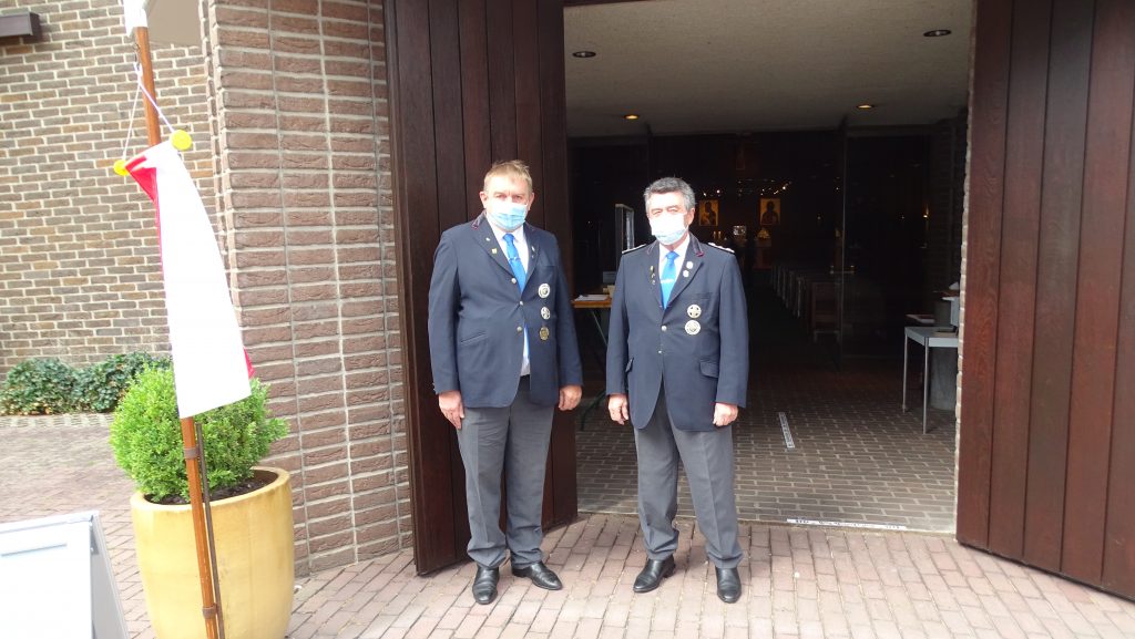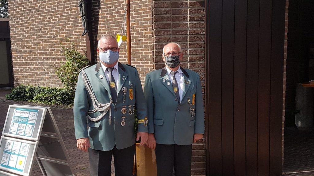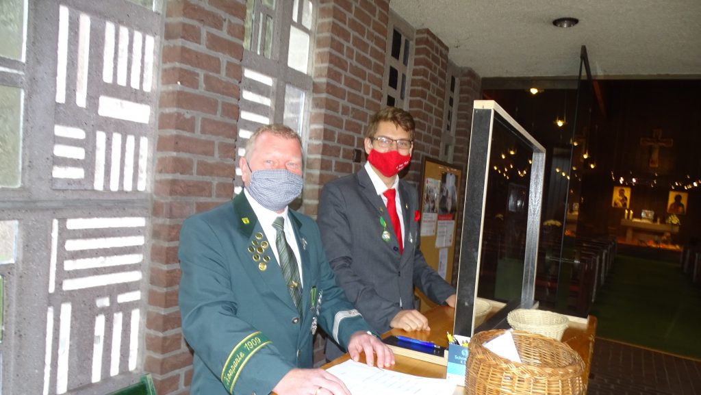 Dirk Steingen von der Tell-Kompanie und Philipp Kellersmann vom St. Georg-Corps waren an diesem Samstag die beiden letzten, die als Ordner in einer der Erstkommunionmessen Dienst taten. Im Sommer hatte Präses Benedikt Zervosen gefragt, ob die Bruderschaft den Ordnerdienst bei der einen oder anderen der insgesamt acht Erstkommunionmessen in St. Johannes übernehmen könnte. Innerhalb kürzester Zeit hatte Schützenchef Andreas Preuß genügend Freiwillige zusammen, um bei allen Messen den Ordnerdienst stellen zu können.