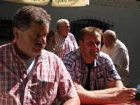 Am heutigen Sonntagmittag trafen sich die Lintorfer Schützen zu ihrem zweiten Frühschoppen in diesem Jahr. Das Thema Nummer eins war an diesem sonnigen Sonntagmittag selbstverständlich das gestrige Fußballspiel der deutschen Mannschaft gegen die Portugiesen. Knapp 40 Schützen trafen sich im Garten des Vereinsheims des St. Georg-Corps am alten Lintorfer Bahnhof.