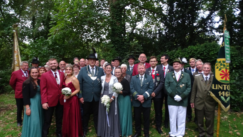 Die Tell-Kompanie, die Königsformation, und das St. Lambertus-Corps, die Kronprinzenformation, waren mit großen Abordnungen vertreten. Wie seit einigen Jahren trug Thomas Iggy Pützer die Bruderschaftsfahne, Felix Schulze trug die Fahne der Königskompanie. Mit dabei war natürlich auch als Traditionskronprinz Thomas Busch.