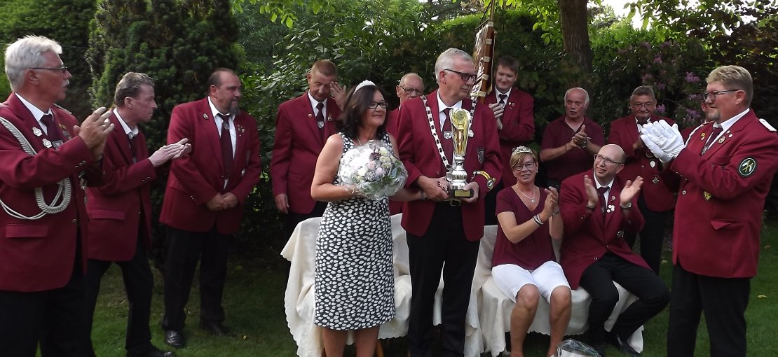 Eine große Abordnung der Lintorfer Bruderschaft gratulierte am Montagabend den neuen Tiefenbroicher Majestäten Achim Schmidt (König) und Alina Schäffkes (Kronprinzessin). Das Königspaar Marcel Fausten und Maxine Kurzhals, das Kronprinzenpaar Patrick Schultz und Melina Hilbig, die Brudermeister Dieter Rubner und René Krein, Oberst Achim Schultz, Fahnträger Uwe Westphal und die Schützenchefs Andreas Preuß und Andreas Nieß verbrachten ein paar schöne Stunden in der Tiefenbroicher Schützenhalle.