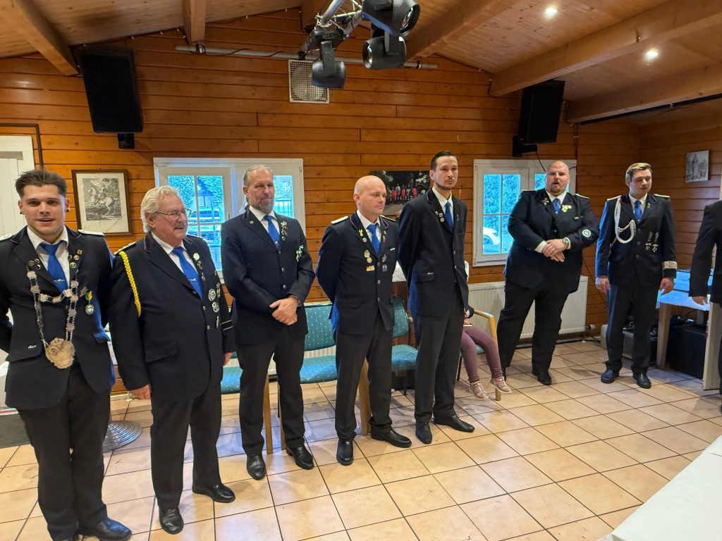 Für eine besonders freudige Überraschung sorgten die Musiker des Tambourcorps Lintorf. Auf ihrer Planwagentour machten sie einen Abstecher zum Königsfest und erfreuten die Gäste mit einem musikalischen Ständchen. Mit einem Augenzwinkern wurde vorgeschlagen, die Gruppe künftig vielleicht in „Tambour-Chor“ umzubenennen.