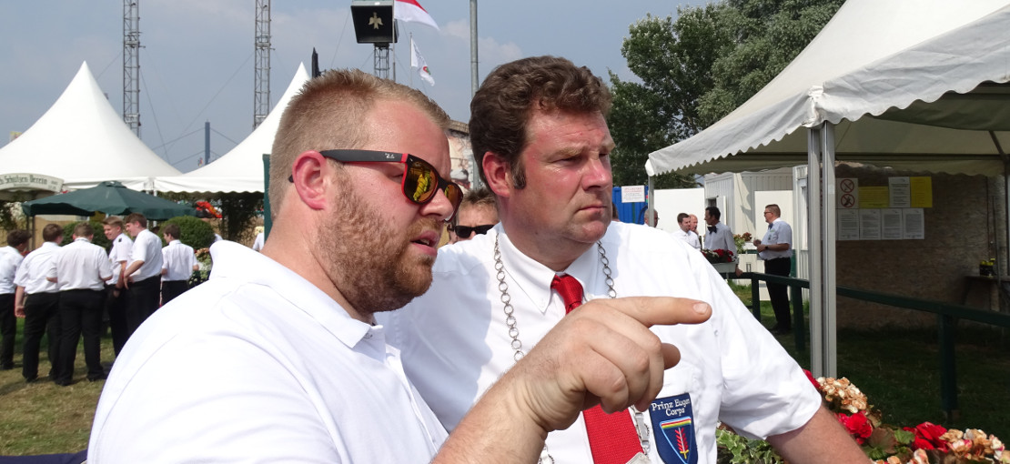 Günther Wenda, Vorsitzender des Corps, freute sich sichtlich über die Teilnahme des Bruderschaftsvorstandes an dem Gottesdienst mit Chef Andreas Preuß, Schriftführer Benno Harnischfeger und Kassierer Theo Kienen. Gekommen waren auch die beiden Ehrenvorsitzenden der Bruderschaft Hans Lumer und Herbert Hirsch, der Vorsitzende der Hubertus-Kompanie Walter Nollen, der Vorsitzende der Reiter Horst-Bruno Schloßmacher, der Vorsitzende des Tambourcorps Reserve Dieter Liere und Achim Schultz, Oberst der Bruderschaft.