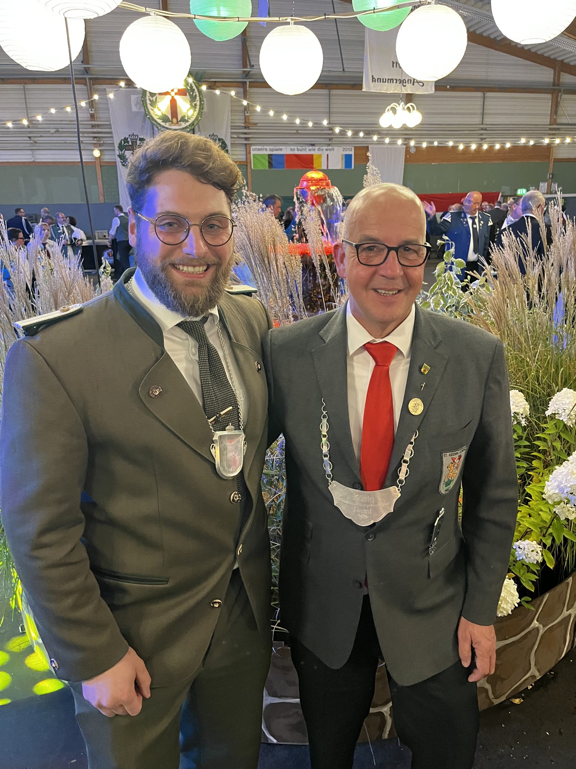 Besonders herzlich gratulierten der König der Lintorfer Bruderschaft, Alexander Schleip, sowie der Kronprinz Malte Kaumanns. Begleitet wurden sie vom Chef der Bruderschaft Andreas Kellersmann, dem Oberst Joachim Schultz sowie dem Brudermeister Werner Bach. Auch das St. Georg Corps als Königsformation und das Jäger Korps als Kronprinzenformation zeigten bei der Feier eine starke Präsenz und unterstrichen damit die besondere Bedeutung dieses Abends.