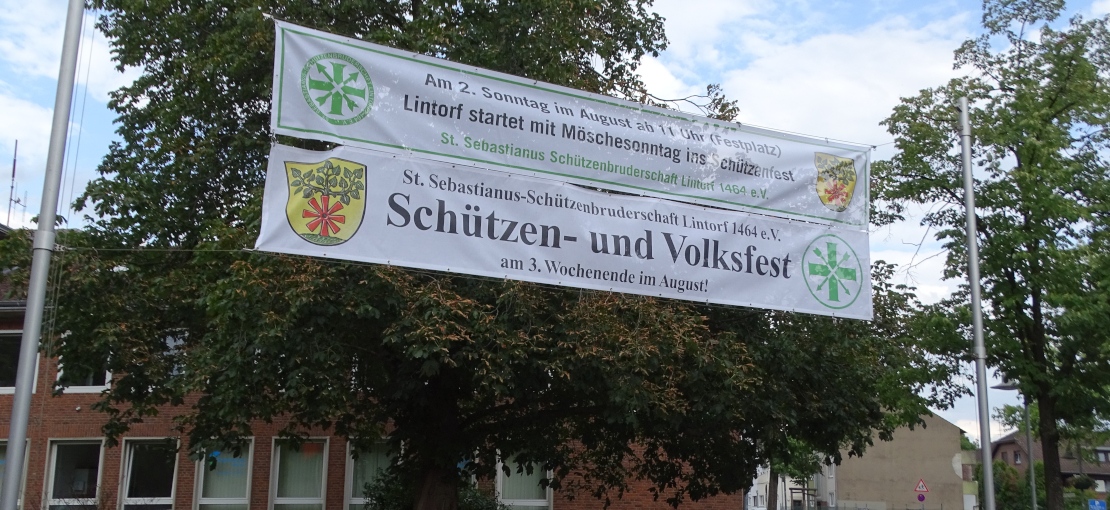 Am kommenden Sonntag kündigt die St. Sebastianus Schützenbruderschaft Lintorf 1464 das Schützen- und Volksfest an, das am dritten Augustwochenende stattfindet. In diesen Tagen schmücken die Schützen die Straßen für den Schützenumzug am 18. August mit den bunten Wimpeln.