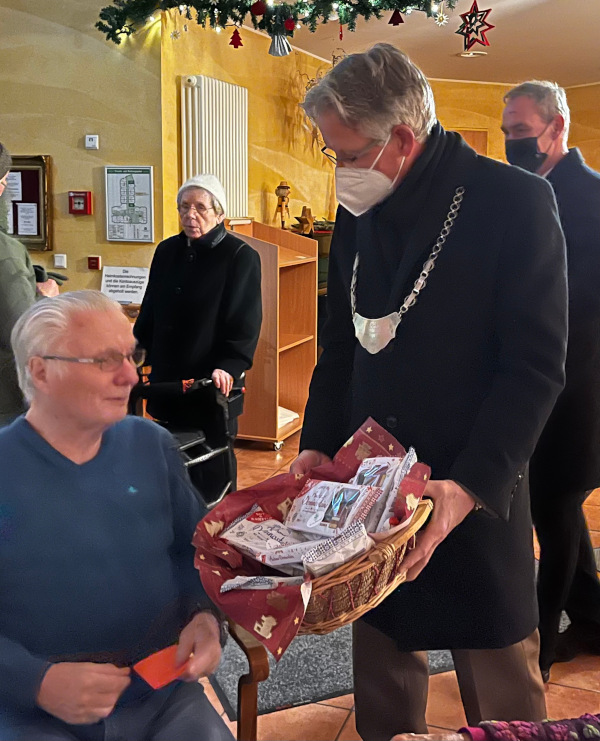 Reich beschenkt wurde der König der Lintorfer Bruderschaft, Thomas Busch, durch glänzende Augen und dankbares Lächeln, als er den Bewohnern, Mitarbeitern und Ehrenamtlichen des Hauses Salem in Ratingen-Lintorf eine kleine süße Überraschung überreichte. Dies war möglich durch eine großzügige Sachspende der Firma EDEKA Kels. Begleitet wurde er dabei durch den Chef der Bruderschaft, Andreas Kellersmann, sowie dem zweiten Vorsitzenden, Frank Groten. Aber auch der Kronprinz, Conrad Koenen, war dabei. Er saß aber auf seinem auf Hochglanz polierten und mit einer einhundertsiebzig Meter langen Lichterkette geschmückten Traktor.
