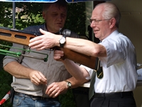Jürgen Steingen, der im Dezember seinen 70. Geburtstag feiert, ist seit 1996 Mitglied der Tell-Kompanie. Er freute sich riesig über seinen gelungenen Schuss. Seit Jahren hielt er beim Königschießen “drauf”, musste aber immer anderen Tell-Kameraden den Vortritt lassen.