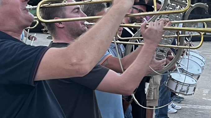 Im Mittelpunkt stand das präzise Marschieren in Kurven. Tambourmajor Christian Scharms nahm alle ordentlich ran: 90-Grad-Kurve links, 90-Grad-Kurve rechts, abruptes Abstoppen – und dann gleich die volle 180-Grad-Wende.